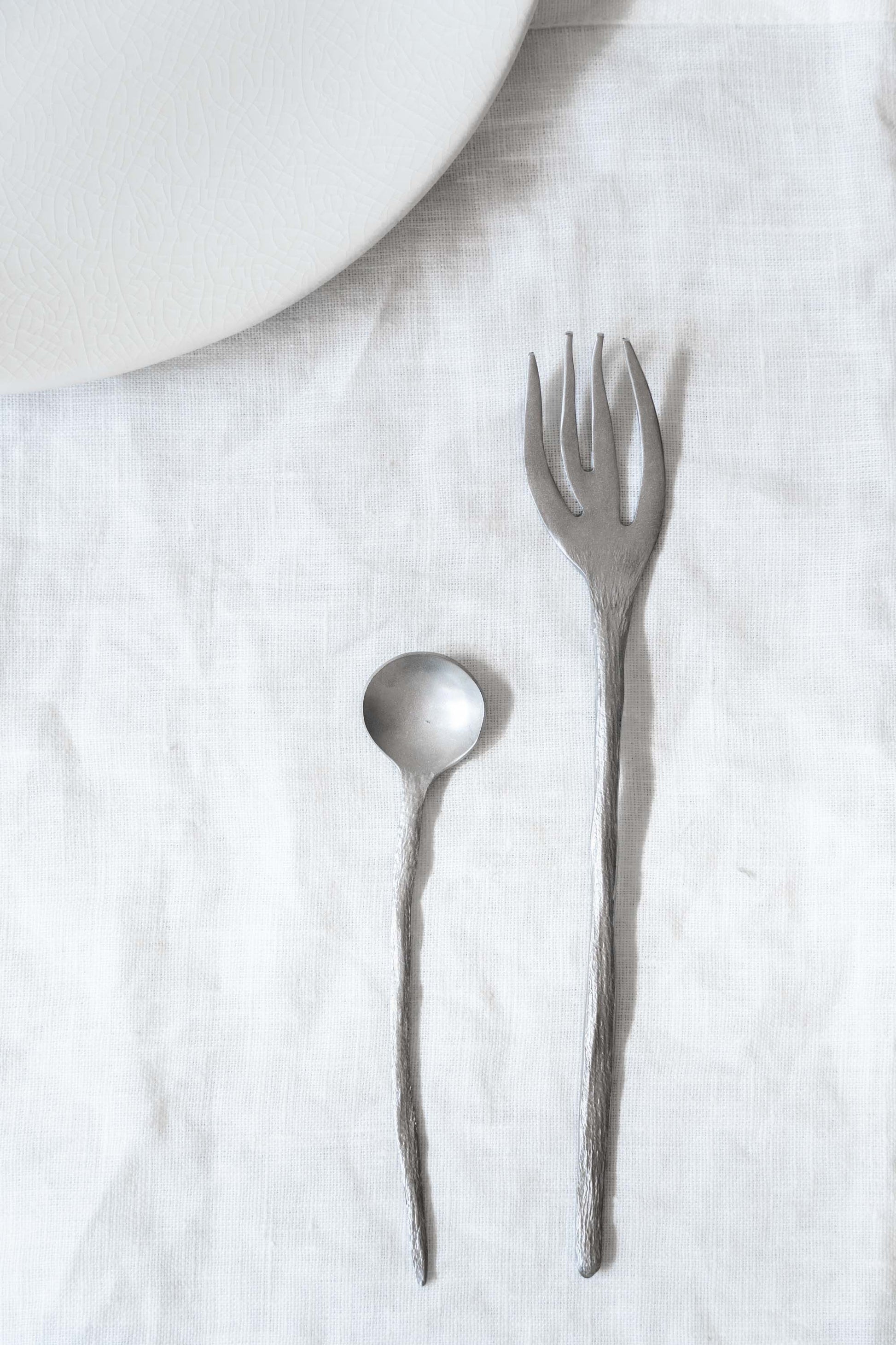 The Flora Vulgaris collection has an unmissable link with Nature. The name alludes to the rather ‘wild’ and intuitive way in which the natural silhouettes of the cutlery have been given shape. Forks like branched twigs, spoons featuring endless leaf shapes and knives looking like razor shells. The colours, the material, the design, and the interplay of lines leading to a perfect imperfection. The designed by Roos van der Velde.