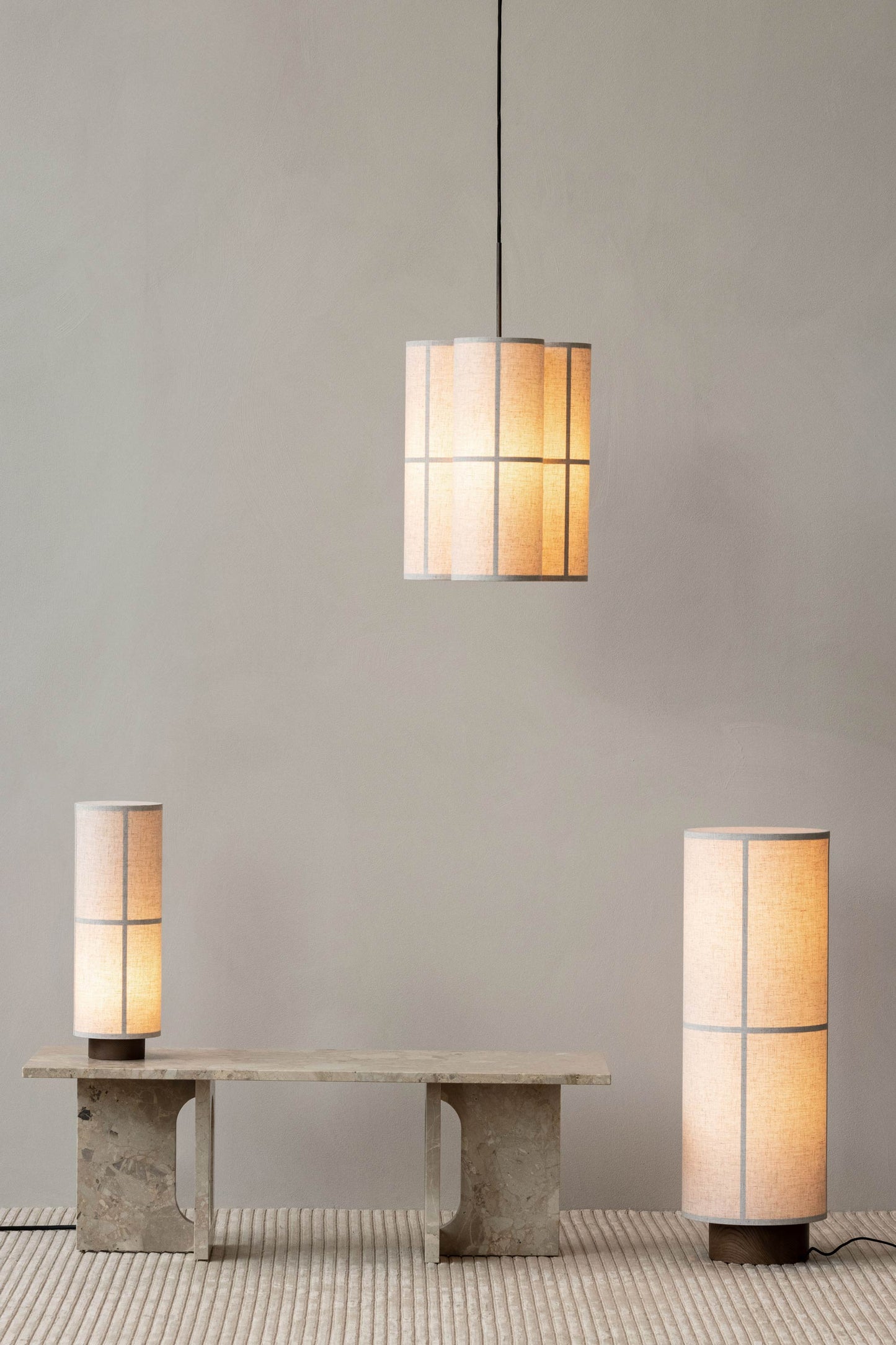 The Hashira Floor Lamp is created with the same column-like shape as the Hashira Pendant and Table Lamp. It's carefully covered with translucent fabric that reveals the graphic structure within and is suspended from the ceiling by a textile cord. The warm light will make every corner of your home more cozy. Make your Hashira Floor Lamp the gem of the room by hanging it above your dining table, in the hallway, or bedroom.