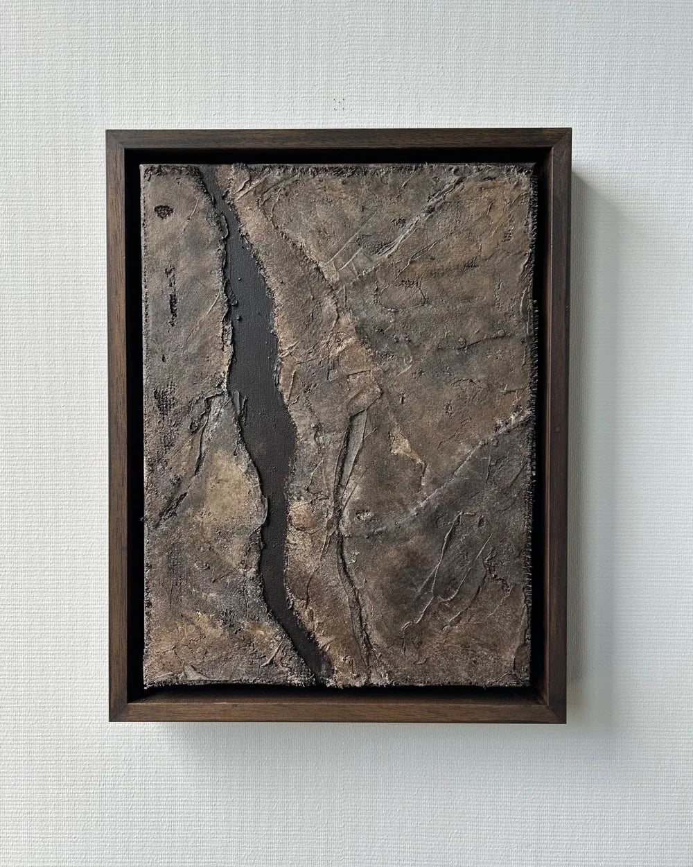 Dit kunstwerk is volledig met de hand gemaakt: van het houten frame tot de pigmenten en penselen.