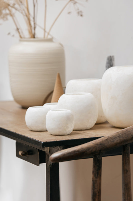 Onze meest gevraagde cadeaus, verkrijgbaar in sets van drie of klaar om te mixen en matchen om een persoonlijk cadeau te creëren. Albasten zijn perfect als kersttraktatie, maar je kunt er het hele jaar door van genieten, zowel binnen als buiten in de tuin.