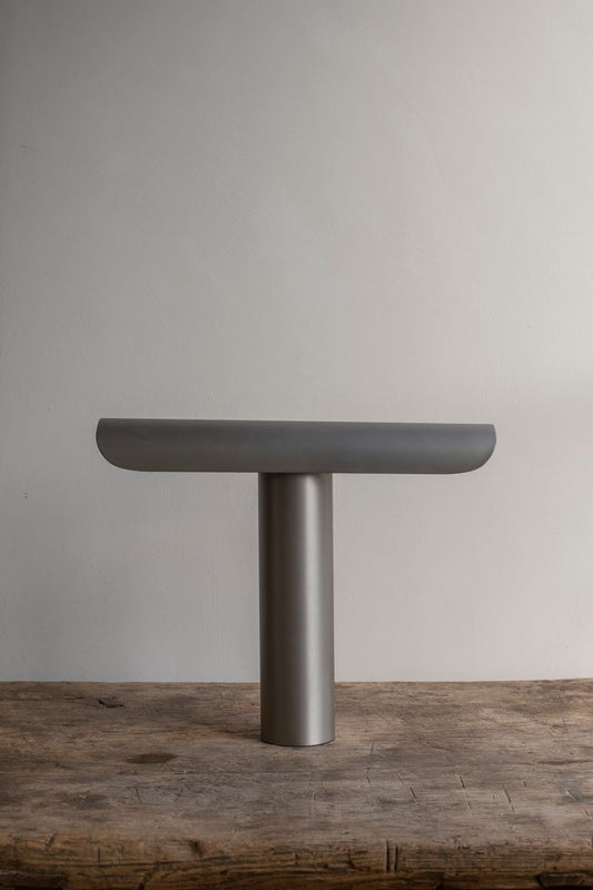 Misschien wel een van de meest iconische ontwerpen (2015) van de bekroonde ontwerpstudio Regular Company. De T-lamp is een variant op de archetypische bureaulamp, met een eenvoudig mechanisme waardoor hij kan kantelen en vanuit verschillende hoeken licht kan werpen. Hoewel vereenvoudigd tot geometrische basisvormen, heeft de lamp een monumentale uitstraling.