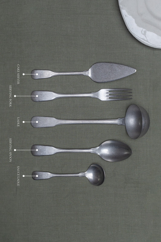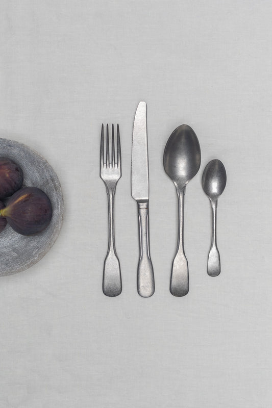 An invitation that encourages to break with usual tableware practices for a more free and informal approach, this cutlery set with a stonewashed look is elegant enough for a formal setting as well as simple enough for everyday use. The collection consists of many pieces, so you can choose to create your own set, much like if you were hunting for vintage cutlery at the original Brick Lane market in London.