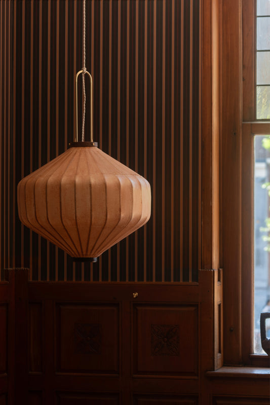 Steeped in tradition, 5 artisans work together to create a single lantern. Each pair of hands completes one of the intricate steps The colours from the lanterns are complete natural, each artisan harvests plants and turns these into rich, natural dyes. The body is handcrafted by skilfully bending bamboo rods. Even the brass and porcelain fittings are handmade, made according to ancient tradition.