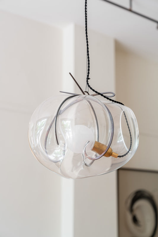 Exhale, undertaken in partnership with Wes McGee creates deep physical resonance between strength, fragility, and the fleeting breath that brings them together. Catie & Wes designed the Exhale light.