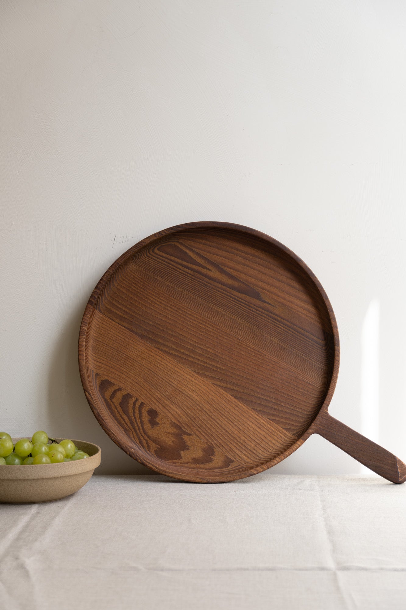 Wood is a living, breathing material. Gently wipe the platter clean and follow up regularly with a food-safe wood oil to keep it supple.